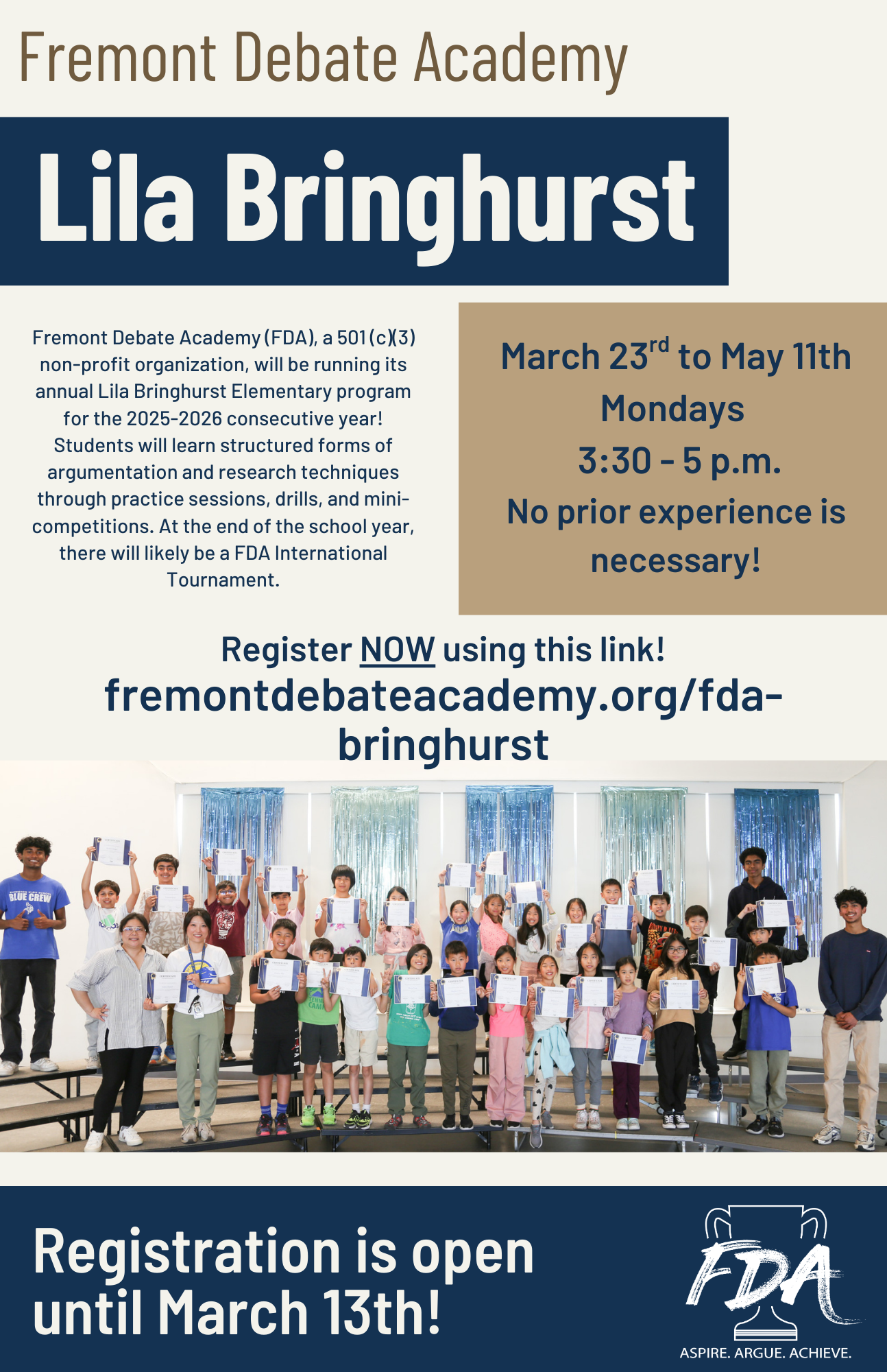 We’re excited to start FDA Lila Bringhurst’s 4th annual debate program this year!